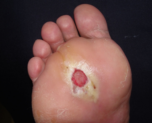 Pessoas com diabetes têm risco anual de cerca de 2% de desenvolver úlceras nos pés.