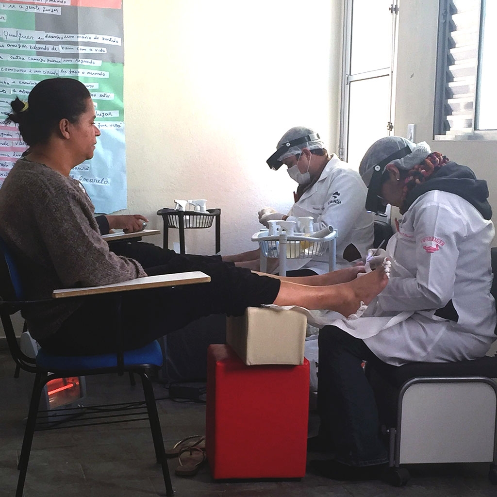 - Treinamento prático, em voluntários, para realização de todas as técnicas básicas podiátricas. Um voluntário por enfermeiro.